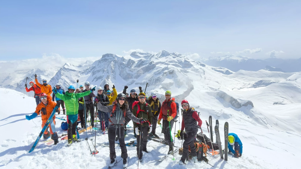 En Punta Custodia llegó uno de los momentos más esperados: el primer descenso. Una pala de unos 300 metros con nieve en condiciones inmejorables se convirtió en una fiesta sobre los esquís. Risas, giros rápidos y ese gozo que solo entiende quien ha sentido la libertad del descenso en nieve virgen.