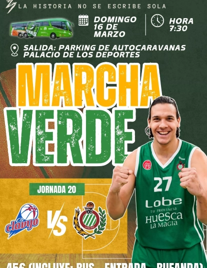 La situación esperanzadora del Lobe Huesca la Magia ha motivado que el club haya organizado una Marcha Verde a Logroño, donde el 16 de marzo disputará un partido importante ante Clavijo. Será la jornada 20 y ya hemos entrado en la fase decisiva para acceder al playoff de ascenso e intentar el asalto a la Primera FEB.