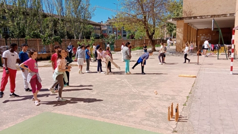 Durante la semana Cultural del CEIP Sancho Ramírez, todo el alumnado de Infantil y Primaria ha estado realizando unas sesiones de juegos tradicionales aragoneses (tiro de barra aragonesa, hoyetes, siete y medio, herradura, bolinches, anillas, rana, etc).