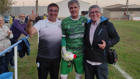 "Los chavales se portaron muy bien porque me arroparon cantidad. Después de 16 años sin jugar, se nota mucho. La mentalidad es la misma, pero la carcasa no", asevera. Los horarios laborales tan solo le permitieron cuajar una sesión preparatoria con el equipo. Fue el viernes previo al partido en Santalecina. "Llegué ese día al entrenamiento y pensaba que no iba a jugar porque habrían conseguido otro portero, pero me dijeron que tenía que jugar. Dije: ¡Madre mía! Haremos lo que podamos". Pero confiesa que durante el partido se encontró "muy a gusto" después de 16 años sin competir. "Lógicamente, las distancias no las controlas como antes. Además, ahora llevo gafas y tuve que jugar con unas de plástico que tengo para trabajar. No es lo mismo, pero me encontré muy a gusto. Casi no llegaron a puerta, mis compañeros lo frenaron y lo hicieron de maravilla".