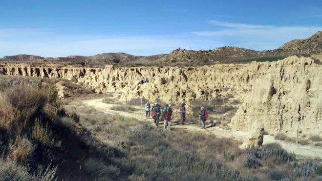 Medio centenar de senderistas participaron el pasado sábado en una excursión, consistente en una caminata entre los pueblos de Piedratajada y Valpalmas, dentro de la Comunidad de Aragón, pasando por Los Aguarales de Valpalmas, una interesante formación geológica, muy dinámica, resultado del efecto de la acción del agua sobre tierras arcillosas muy solubles, como puede apreciarse en las imágenes.