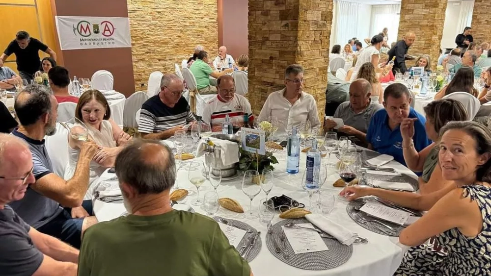 La lista de entidades que se unieron a esta fiesta fue larga: La FEDME y la FAM, además de clubes como Montañeros de Aragón de Zaragoza o Peña Guara de Huesca acompañaban a las autoridades locales y comarcales, todos sentados junto al presidente, José Masgrau, y la vicepresidenta, Carmen Guardia. La mesa de los más veteranos provocaba un sentimiento de gratitud pues eran los maestros y la primera de las cuatro últimas generaciones del Club.