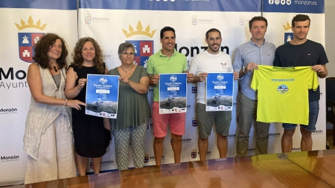 De Monzón al Aneto: un gran reto en beneficio de la Asociación Alzheimer. El concejal de Deportes del Ayuntamiento de Monzón, Eliseo Martín; los impulsores del Desafío, José Ramón Villa, Sergio Batista e Iván Febas; y las representantes de la Asociación de Familiares de Enfermos de Alzheimer y Otras Demencias de Monzón (AFEDAM), Nati Paul, Marimar Lacosta y Maribel Vidal, han presentado este miércoles en el Ayuntamiento el IV Desafío Solidario Monzón 3.404, que se desarrollará los días 13 y 14 de septiembre en beneficio de la asociación.