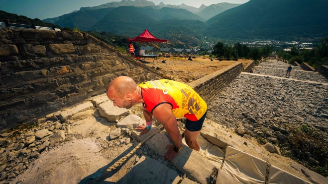 Las 26 gradas del barranco de El Lierde (el barranco tiene un total de 28), en Villanúa, se van a convertir nuevamente este sábado en los temidos muros que deberán superar los más de cien participantes que van a tomar la salida en la cuarta edición de “El Muro”, la carrera de obstáculos más espectacular del Pirineo. En cuatro años la prueba ha crecido imparable en número de inscritos, en dificultad, en popularidad y también en expectación, porque cada año se incorporan al circuito nuevos retos que ponen a prueba la destreza y la resistencia física de los atletas.