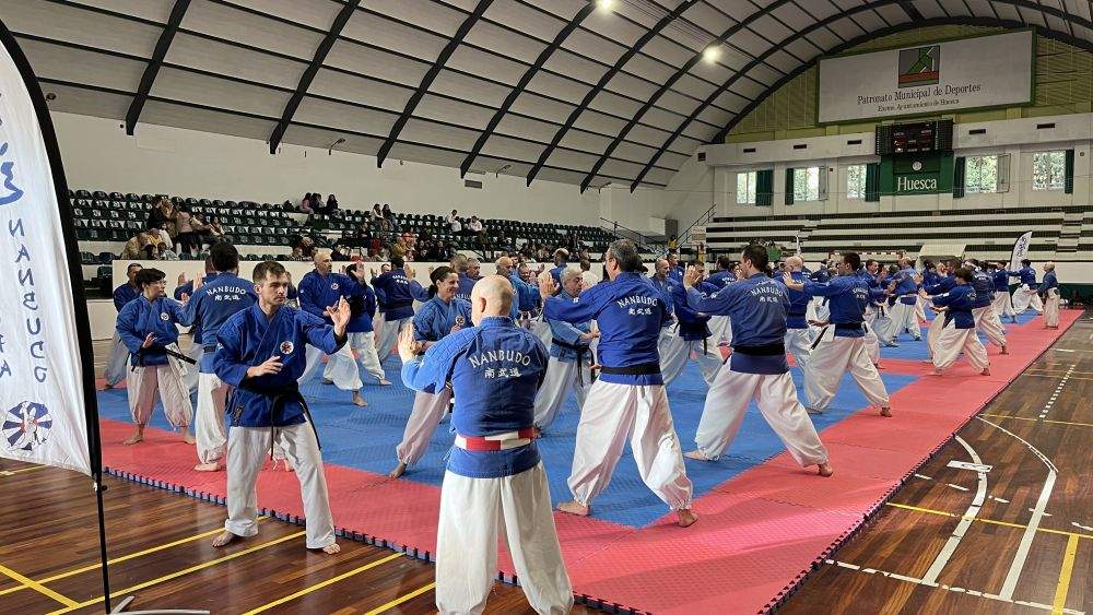 Por un lado, se está celebrando un curso internacional de nanbudo donde participan 12 países con alrededor de 200 nanbudokas. "Estamos trabajamos los principios básicos sobre nuestra técnica. Hemos hecho unos trabajos de corta distancia y ahora estamos trabajando con el maestro Stephan Carell un trabajo sobre agarres aplicados al combate. Esta mañana, Serge Salvai, un maestro de Marsella, ha estado trabajando aplicaciones en ejercicios individuales", explica Mariano Carrasco, profesor del Nanbudo Dojo Sakura Huesca.