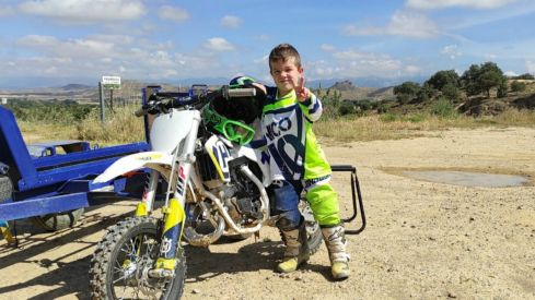 Nicolás Usieto nació con una moto debajo del brazo. Tan solo tiene ocho años y lleva en el mundo del motor desde los cuatro. "Le encantan, está federado desde los 6 años y el pasado año ya compitió en dos carreras. Ha comenzado este año compitiendo en el Motocross Trofeo Villa de Zuera y el día 19 lo hará en Monzón”, explican sus padres, Álex y María Jesús.