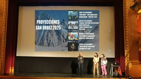 La alpinista oscense Nieves Gil y la madrileña Lucía Guichot han protagonizado la conferencia Del Pirineo al Karakorum dentro de las Proyecciones San Úrbez 2025 celebradas en el Teatro Olimpia de Huesca, con una gran afluencia de público.