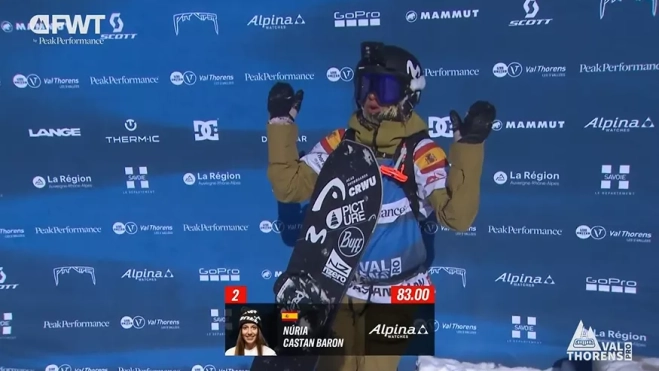 Castán, que ha salido en quinta posición, ha realizado una bajada excelente, combinando fluidez y técnica, lo que le ha valido una puntuación de 83 puntos, situándola provisionalmente en segunda posición, solo por detrás de la francesa Noémie Equy, quien había logrado 88 puntos. Sin embargo, en el último descenso de la jornada, la leyenda francesa Marion Haerty, que contaba con una wild card para participar en el evento, ha firmado una actuación espectacular, alcanzando 95 puntos y relegando a Núria a la tercera plaza definitiva.