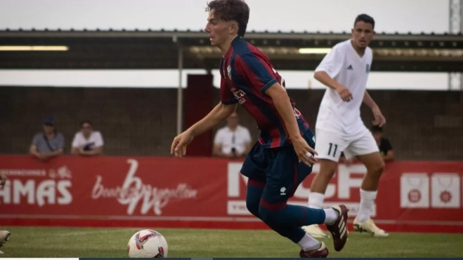 El oscense Manu Rico prolonga su contrato como jugador de la SD Huesca una temporada más, una vinculación con el club tras militar el pasado curso cedido en la SD Tarazona de Primera RFEF, una experiencia positiva en la evolución del joven futbolista.