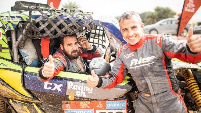 "¡Somos finishers del Dakar!". Así anunciaba el propio Joan Font en sus redes sociales la heroicidad que ha logrado junto al altoaragonés Themis López, quien este domingo ha concluído su primera participación en el Rally Dakar de manera exitosa. No ha podido tener un mejor debut el oscense, sentado a la derecha de piloto catalán al que le ha servido la amplia experiencia que ha cosechado a lo largo de su carrera para registrar un hito que ya quedará para la historia del motor altoaragonés. Ambos han finalizado la prueba en un 16º puesto, montados en un buggy del FN Speed Team.