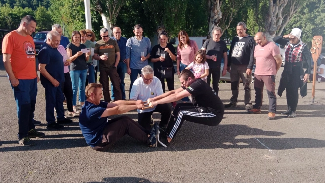 Al término de la comida, se realizó una jornada de juegos tradicionales aragoneses (tiro de barra aragonesa, rana, hoyetes, siete y medio, anillas verticales, herraduras, palistroc de Azanuy, anillas, tiro al palo, pulso de pica, tiro de soga, aros…) dirigidos por los monitores de Huesca, Fernando y Mariano Carrera Martín. Este año, la A.D. juegos tradicionales altoaragoneses, está celebrando su 40 aniversario.