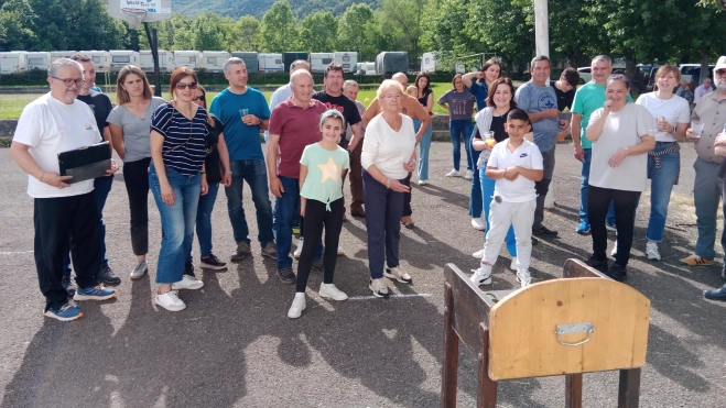 Al término de la comida, se realizó una jornada de juegos tradicionales aragoneses, (tiro de barra aragonesa, rana, hoyetes, siete y medio, anillas verticales, herraduras, palistroc de Azanuy, anillas, tiro de soga, aros…) dirigidos por los monitores de Huesca, Fernando y Mariano Carrera Martín.