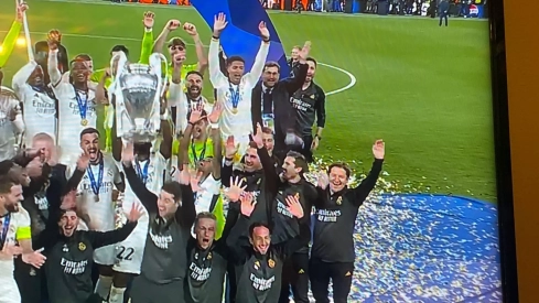 La imagen de esta noche con los jugadores, Carvajal y Vinicius en el centro del Madrid, levantando la Copa nos ha dejado en nuestras retinas oscenses a Víctor Alfaro en la parte de la derecha, con otros compañeros del servicio médico y del técnmico, levantando las manos eufóricamente.