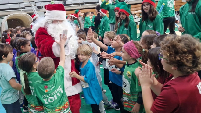 No una, sino dos, han sido las apariciones de Papá y Mamá Noel en el Palacio de los Deportes en el transcurso de la última jornada del año del Atletismo Divertido en la temporada de su 20 aniversario. Mucha expectación entre la chiquillería, primero de los alumnos de 3º y después, como colofón, con los de 1º y 2º de Primaria. Estos dos bloques, unido al más madrugador, los grupos de 4º a 6º de Primaria, han contabilizado una participación de 340 atletas, de los cuales 62 han sido de 4º, 82 de 5º y 6º, 80 de 3º, 60 de 1º y 55 de 2º.