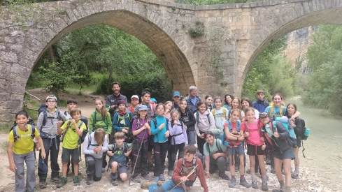 Los autobuses nos dejaron en el aparcamiento del camping de Lecina, donde partimos todos camino de Lecina, para visitar la carrasca milenaria, después continuamos la ruta, y nos dirigimos por un antiguo camino de herradura, en dirección hacia el río Vero.