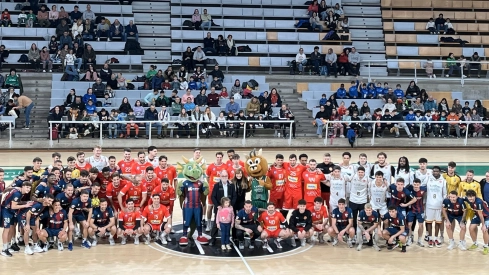 'Jugando Contra el Cáncer' consta de una mini liga en la que participan los tres equipos protagonistas, jugando a las dos disciplinas que no son la suya, en partido de 15 minutos. La tarde ha comenzado con un partido de baloncesto entre Bada y SD Huesca donde pronto se ha evidenciado la diferencia de envergadura. Los chicos de Nolasco han impuesto su ley, con un mayor acierto ante un equipo azulgrana que no acertaba en el triple. Incluso Samu Cordiés se ha atrevido con algún mate para deleite del público. A Bolo no le ha quedado más remedio que hacer cambios, pero el gigantón Nasarre negaba cualquier intento. El meta del filial Alan ha terminado con la sequía del Huesca con un gran triple. Dani Ojeda lograba un dos más uno que hacía recortar una notable diferencia en el marcador, pero Bada se imponía y hacía buena la renta conseguida en el inicio del partido (22-11).