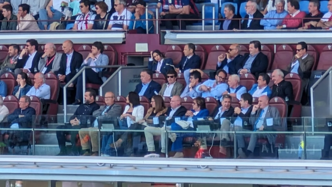 Curioso el palco de esta tarde, en el que la segunda fila llamaba más la atención que la primera. Los consejeros Agustín Lasaosa, Fernando Rivas y el propio Ollés, el asesor del Consejo Javier Cruz y el obispo de Barbastro-Monzón y amigo del presidente de la Fundación, don Ángel Pérez Pueyo.