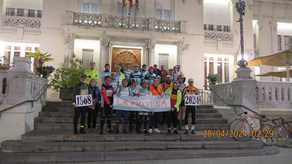 La cicloclásica "La Pionera" organizada por el club El Pedal Aragonés de Zaragoza completó recientemente su recorrido entre Huesca y Zaragoza con una marcha nocturna -pues se trata de buscar el máximo sentido- con el fin de homenajear al herrero oscense Mariano Catalán, el hombre que fabricó la primera bicicleta española. Alrededor de una treintena de cicloturistas bien equipados con luces y chalecos reflectantes pasaron por delante del Casino recordando a Catalán. La Pionera es un giro total hacia el pasado con bicicletas clásicas.
