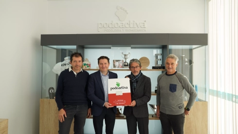 El director general de Podoactiva, José Víctor Alfaro, ha recibido el II Premio ‘Sierra de Guara’ a la Solidaridad por parte del Club de Montaña Javieres de Huesca, cuyo presidente, Javiere Cruchaga, el vicepresidente, Antonio Rico, y el vocal Nino Gracia acudieron a la sede central en el Parque Tecnológico Walqa.