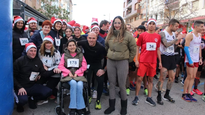 Multitudinaria San Silvestre Solidaria de Binéfar en su XVI edición con 518 participantes, más 100 dorsales solidarios (50 de Metaga y 50 de Seragromilk), que sumaron una recaudación récord de 1.787 euros que fueron donados a la Asociación Elegir la Alegría (ELA) y recogidos por Lorena Dal, una afectada de esta enfermedad, que también tomó parte en la prueba.