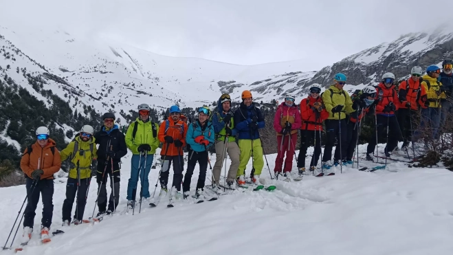 Esta salida ha supuesto, a pesar, o gracias a no poder conseguir la ascensión a la cumbre planificada, un buen aprendizaje y acopio de experiencia para el personal, tanto en el aspecto de esquiar sin visibilidad, siguiendo trazas y referencias, como en el de que en estos terrenos de alta montaña siempre, y en invierno sobre todo, la prudencia debe presidir todas las decisiones del grupo, leyendo el monte en todo momento y renunciando a la cima cuando el riesgo se multiplica, sabiendo que éste se hace exponencial a medida que se gana en altura y que un posible rescate ante un accidente, en esas condiciones, se hace muy difícil y, como mínimo, muy lento y penoso.