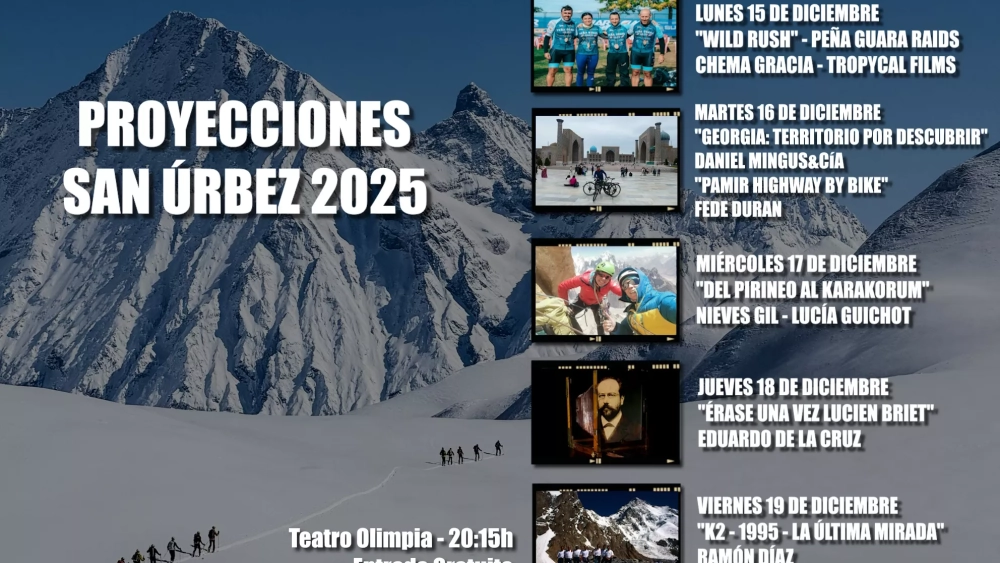 La semana del 15 al 19 de diciembre, el Club de Montaña de Huesca Peña Guara organiza las Proyecciones de San Úrbez, evento cultural de referencia para el disfrute de los amantes de la alta montaña. Abierto a todo el público, dedicado a grandes e históricas figuras del montañismo, así como a las nuevas generaciones.