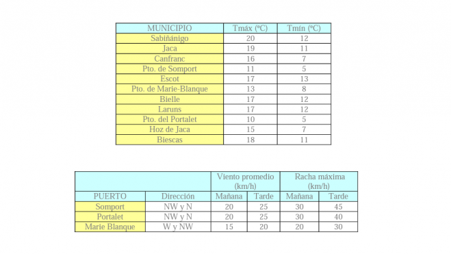 Se esperan precipitaciones débiles o moderadas a lo largo de la jornada, con mayor frecuencia e intensidad en la vertiente norte. Caerán a veces en forma de chubascos, que en las horas centrales, y hasta media tarde, podrían ir acompañados de alguna tormenta, aunque la probabilidad de éstas es baja. Tenderán a remitir en las últimas horas. Las temperaturas serán frescas, sobre todo en cotas altas, con máximas previstas en los puertos entre 10 y 13ºC. Los valores más bajos se darán por lo general al final del día, aunque las variaciones de nubosidad y los eventuales chubascos podrán originar acusadas oscilaciones térmicas de carácter transitorio.