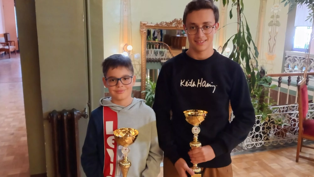 La Escuela de Mayrelis Delgado ha logrado un “doblete” brillante con las victorias de Nicolás Quintilla (CA Binéfar) y Mateo Mendoza (Jaime Casas) en sus respectivas categorías en el XV Torneo Ciudad de Huesca-Memorial Jesús Belenguer de ajedrez disputado este domingo en el Salón Azul del Casino Oscense con la organización del Club Jaque-Aramóvil.