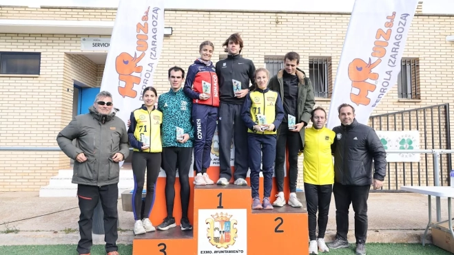 Unos 400 atletas y victorias absolutas de Raquel de Francisco y Roberto Gibson en el Cross Villa de Pedrola, tercera prueba del calendario de la Copa de Aragón y Copa Escolar de cross. A pesar de las difíciles condiciones meteorológicas, la competición estuvo una vez más a la altura de su merecida reputación y proporcionó la ocasión de disfrutar de una excelente mañana de campo a través para deleite de atletas y público. Hay que destacar el gran trabajo del Servicio Municipal de Deportes en el diseño y preparación de un circuito perfectamente acondicionado para la ocasión. Fue decisivo el apoyo del Ayuntamientode Pedrola y la Comarca Ribera Alta del Ebro. La dirección técnica la llevó el Club Atletismo Olimpo, coordinador de la Copa de Cross. La organización estuvo perfecta y todo el programa se desarrolló sin incidentes y conforme a las previsiones.