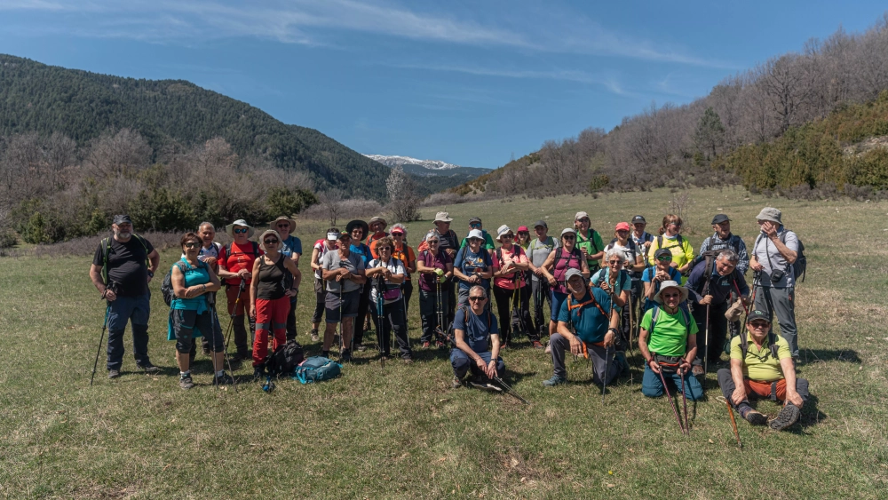A las 7:30 horas del domingo día 14 de abril, 38 senderistas de la sección de Rutas por la Provincia de Peña Guara, partíamos en dirección al Alto de Bonansa, punto inicial de nuestra excursión, ya el año pasado iniciamos aquí una ruta circular por las Ermitas de Bonansa, en esta ocasión cambiaremos el sentido de la marcha y en primer lugar nos dirigiremos, por un sendero adaptado, hasta el Mirador de Isábena, disfrutamos un rato de las vistas y seguidamente iniciamos un descenso por una senda señalada con marcas rojas y blancas que en 30 minutos nos dejó en la carretera que hemos utilizado al venir, cruzamos la misma y comenzamos a subir en dirección a la localidad de Alins, el desnivel es considerable, el firme es de piedra suelta, así que lo tomamos con calma.