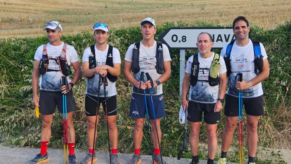 Cinco valientes de Montañeros de Aragón Barbastro han finalizado este sábado el Reto Pico Aneto a Barbastro por el 75 aniversario del club altoaragonés. Este sábado por la mañana, a eso de las 7:45 horas, han comunicado que llegaban a Naval desde Navarri y Ligüerre de Cinca.