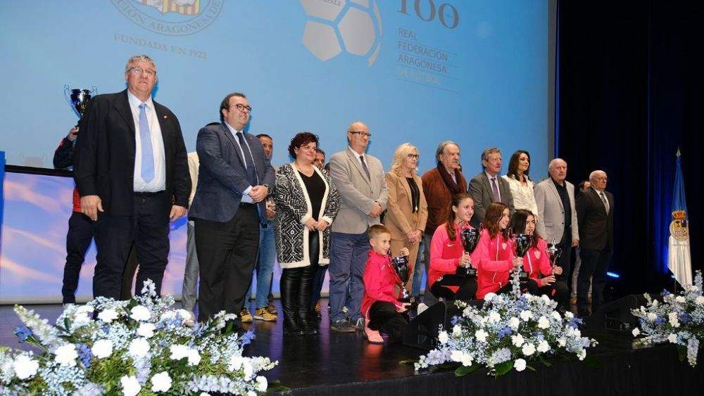 En primera fila, junto con el presidente de la RFAF, Óscar Fle, han comparecido José María Romance, teniente de alcalde de Huesca; Manuel Torralba, presidente del centenario de la RFAF; Sofía Avellanas, delegada de Deportes de la Diputación Provincial de Huesca y Pedro Ibaibarriaga, consejero de la SD Huesca. Hasta 15 clubes han recogido su galardón por los diferentes logros conseguidos durante la campaña 2021/22. Unas entidades a las que ha brindado un aplauso el propio Fle, agradeciendo así la "respuesta del público oscense" a este acto. Ha recordado todos los eventos que se han celebrado en Aragón por el centenario de la RFAF como la gala en el Teatro de Zaragoza, los desayunos de EuropaPress, así como los partidos de la Selección Española absoluta y Sub 21 en La Romareda y El Alcoraz que se disputaron el pasado mes de septiembre. En este sentido, ha subrayado que se está trabajando para que el equipo femenino dispute un partido en el campo Pinilla de Teruel. Además, existe la intención de llevar a la selección brasileña de fútbol sala hasta Aragón para disputar un partido ante España.