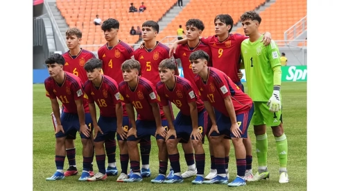 España: Raúl Jiménez, Héctor Fort, Jon Martín, Pau Cubarsi, Pau Prim (Marc Bernal, m.72), Marc Guiu, Juan Hernández (Paulo Iago, m.61), Peio Huestamedina (Pablo López, m.61), Óscar Mesa, Quim Junyent (Andrés Cuenca, m.85) y Daniel Yáñez (Igor Oyono, m.61).