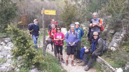 Volvemos por la GR1, pasando por la fuente de Nasarre, este año con mucha agua. De nuevo pasamos por el barranco de Andrebod, repleto de abrigos y covachas, para acabar descalzándonos y cruzar el barranco del Mascún, que resulta reconfortante para nuestros pies. Solo nos queda pasar por su caudalosa surgencia y acabar en la orilla que nos conduce al camino de subida final al pueblo. Han sido algo más de 19 kilómetros de disfrute, sobre los 1.000 m de desnivel y 9 horas de actividad, aunque con largas paradas (no se tenía prisa) que finalizaron en el bar de Florentino con una tertulia y nuevos proyectos por el Mascún.