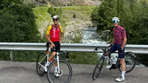 Sergio Samitier, ciclista barbastrenses de Cofidis, ha grabado este viernes un "Pericopuerto", una serie muy reconocida dentro del mundo ciclista que forma parte de las retransmisiones de la Vuelta a España.