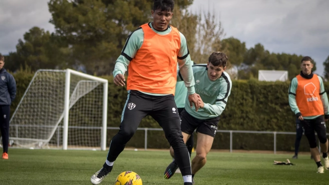 Durante la sesión, se ha podido ver a Ángel Martín González, director deportivo de la SD Huesca, conversar con Antonio Hidalgo durante varios minutos.