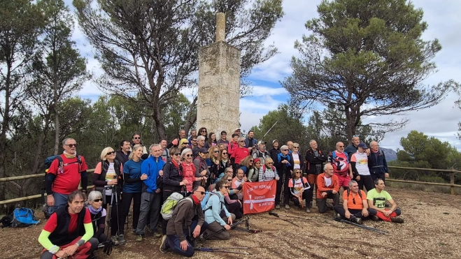Pero reanudando la ruta, con buenas pistas y sendas, los caminantes han alcanzado el vértice geodésico de Santa Quiteria, que algunos han aprovechado para escalar hasta arriba la media docena de metros, muy original. Allí también, la Ermita de Santa Quiteria que está perfectamente restaurada. Las preciosas vistas han representado una reposición anímica de fuerzas para descender por una senda bien trazada y pronunciada hasta enlazar con la pista de Estronad y encarar el último kilómetro. Al final, 14,75 kilómetros con un desnivel positivo de 350 metros.