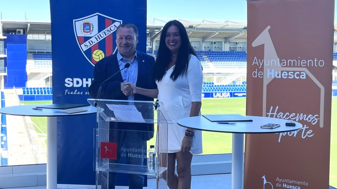 La SD Huesca y el Ayuntamiento de Huesca han firmado este martes por la mañana un nuevo acuerdo de colaboración. Se trata de un nuevo convenio que han firmado Agustín Lasaosa, presidente del club azulgrana; y Lorena Orduna, alcaldesa de la ciudad de Huesca. El acto se ha celebrado en el restaurante El Mirador de El Alcoraz. "No me cabe duda que será el primero de muchos porque se nota el cariño mutuo", explicaba Lasaosa.