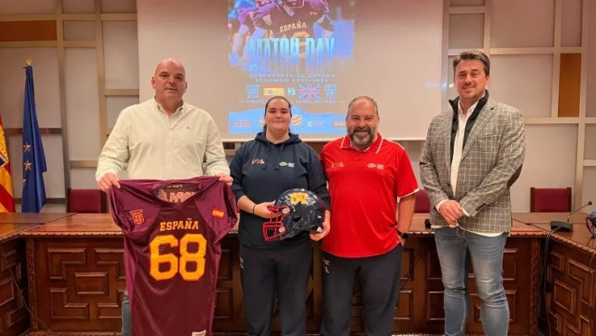 La presentación tuvo lugar este martes por la mañana en el Ayuntamiento con la presencia del concejal de Deportes del Ayuntamiento de Jaca, Sergio Cajal; el presidente de la Federación Aragonesa de Fútbol Americano, Juan Muñoz; el seleccionador nacional, Manuel Ibáñez; y una de las capitanas de la selección, Lía Serrano.