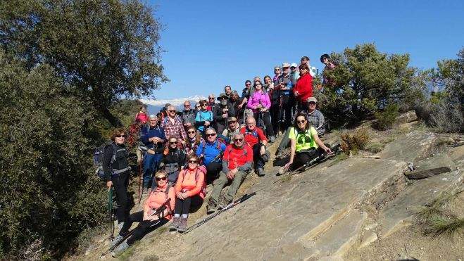 Repuestas las fuerzas, continuamos la senda siguiendo la cresta de la sierra en dirección sur hasta llegar a la ermita la de La Magdalena con la visión de todo el sur del pantano, incluida la torre de Mediano asomando de las aguas, el aeródromo de Plampalacios cerca del agua y la ermita de la Virgen de los Llanos, tras lo cual seguimos la senda que gira al norte en dirección a Coscojuela donde llegamos al fin de la ruta, algunos con las fuerzas ajustadas.