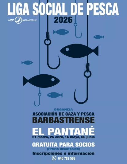 La Sociedad de Caza y Pesca Barbastrense, dentro de su programación para esta temporada, pone en marcha una liga social de pesca. Esta liga, exclusiva para socios, pretende fomentar el contacto entre los miembros de la sociedad y su participación en ella, haciendo que durante cuatro jornadas puedan disfrutar de la pesca en una competición organizada como eje de confraternización social.