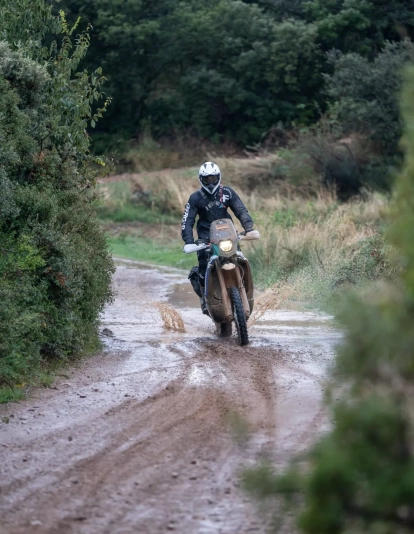 Y es que la dureza de los 350 kilómetros había sido acrecentada por las abundantes lluvias de los días precedentes y del propio sábado, que dejó caminos y pistas embarrados. Los participantes llevaban su libro de ruta en pantalla -los más- o en papel y habían de verificarlo el propio viernes en Neumáticos Somport. Los motoristas exhibieron pericia y fuerza (hay que tener en cuenta que las motos pesan entre 140 y 250 kilos).