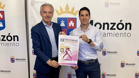 El concejal de Deportes, Eliseo Martín, y el director del Torneo, Michel Irigaray, han presentado este martes, en el Salón Azul del Ayuntamiento de Monzón, el XIX Torneo Internacional de Tenis Conchita Martínez, que se celebrará del 11 al 18 de mayo en el complejo Conchita Martínez con entrada libre, dotado de 25.000$.