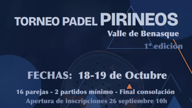 El Valle de Benasque acogerá la primera edición del Torneo de Pádel "Pirineos". Se trata de un evento que se celebrará los días 18 y 19 de octubre y está diseñado con el objetivo de atraer a parejas de toda España que buscan una competición más exigente en un entorno de montaña perfecto.