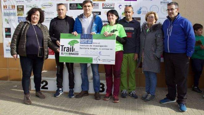 José Luis Calvo y Alina Stroia en la 18K y Carlos Pitarque y Roxana Bota en la 7K fueron los vencedores de la Trail Solidaria El Pino, celebrada el pasado domingo en Binaced, con alrededor de 300 participantes entre las dos carreras y la andada popular. Se recaudaron 12.000 euros, que fueron entregados al Instituto de Investigación Sanitaria de Aragón.