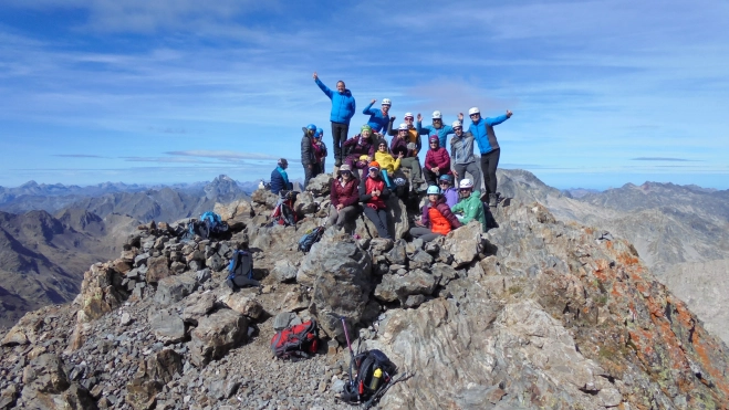 El día ha sido inmejorable gracias al buen tiempo y también a la buena logística del grupo al no madrugar para encontrar las zonas de hielo casi derretido, también cabe destacar el buen hacer del grupo esperando siempre a los que van más despacio haciendo gala del compañerismo que siempre destaca en este grupo Travesías Pirenaicas que le da las gracias como siempre a esta bella cima, la Gran Facha.