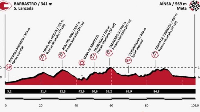 El Trofeo Vive Guara tiene un perfil rompepiernas, con casi 107 kilómetros y cinco altos de montaña (Loma del Molar, Alto del Pino, Troncedo I y Troncedo II y Cerro Torrelosa) y el repecho final en la llegada al castillo de Aínsa, en “hora punta”, que pondrá la llegada a meta en fila india a los corredores, con lo cual el espectáculo se da por garantizado de principio a fin. Un trazado sinuoso por momentos, con un desnivel de 3.000 metros y alejado de las carreteras principales y que discurre por las que unen los pueblos por los que tendrán que ir los ciclistas. “Es un recorrido técnicamente muy bonito y para los ciclistas va a ser un reto, no hay un metro llano y la llegada, con ese repecho final en el castillo de Aínsa, será la puntilla”, ha expuesto Miguel Bergua.