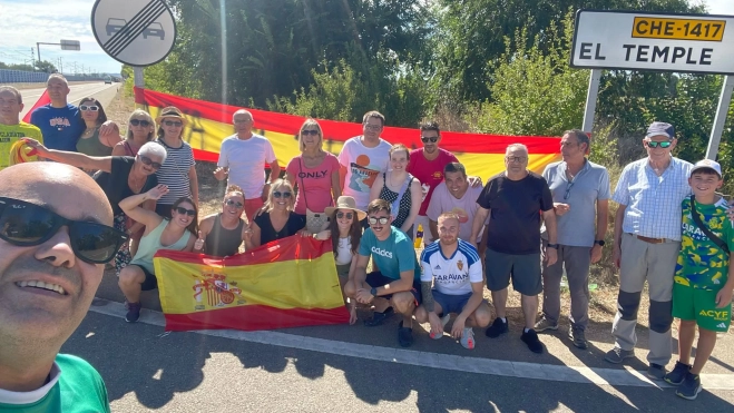 En el cruce, se acercó un motorista con el cámara de Televisión Española y los vecinos le pidieron que mostrara su bandera. En el fondo, es un subidón de moral ver en la pantalla el nombre de tu pueblo. El cámara les replicó que imposible, que lo tenían terminantemente prohibido, lo que suscitó el malestar de estos templarios de El Temple. Lo hubieran entendido si hubieran añadido el complemento del viejo topónimo, El Temple del Caudillo, por aquello de los símbolos franquistas, la memoria democrática y otras argumentaciones, pero lisa y llanamente era una bandera de España, un alegato de la vida y el nombre de la localidad.
