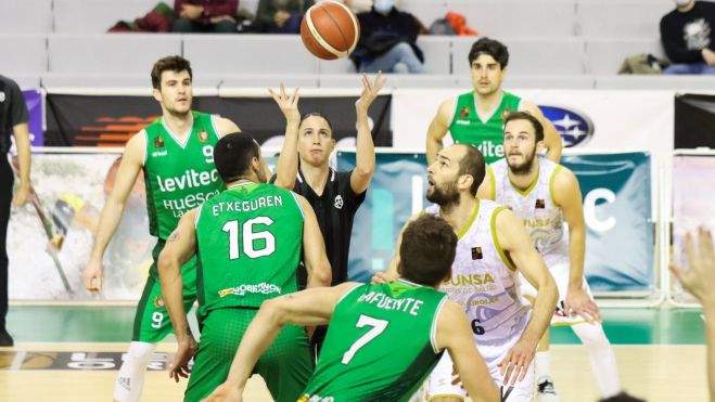 Del carro de la nave peñista tiraron un espléndido Miguel Montañana, que regresaba a Huesca tras vestir de verde en Leb Plata; el lituano Gintaras Leonavicius y Kevin Nutson.