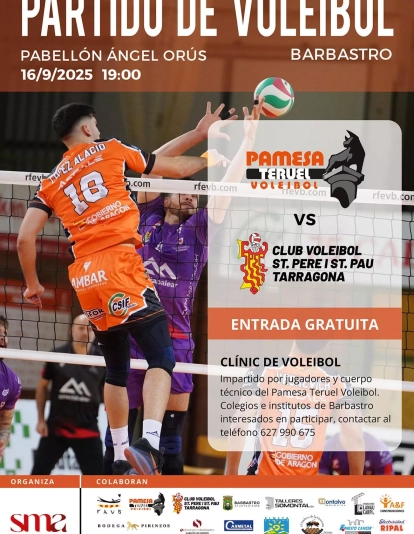 Barbastro vuelve a acoger este próximo martes 16 de septiembre y por quinto año consecutivo una jornada de promoción del voleibol con el Pamesa Teruel Voleibol como protagonista. En esta ocasión, y como hace ahora casi un año, tomará parte también en la jornada el Club Voleibol Sant Pere i Sant Pau, igualmente de Superliga. Ambos combinados se enfrentaran en el Ángel Orús a las 19.00 h. En 2024, la victoria fue para los turolenses, que se impusieron por 3-0 y, por la mañana, los jugadores del Pamesa Teruel, ofrecieron un clinic para escolares en el que han participado 300 pequeños. Este 2025, de nuevo, volverá a celebrarse un evento idéntico.